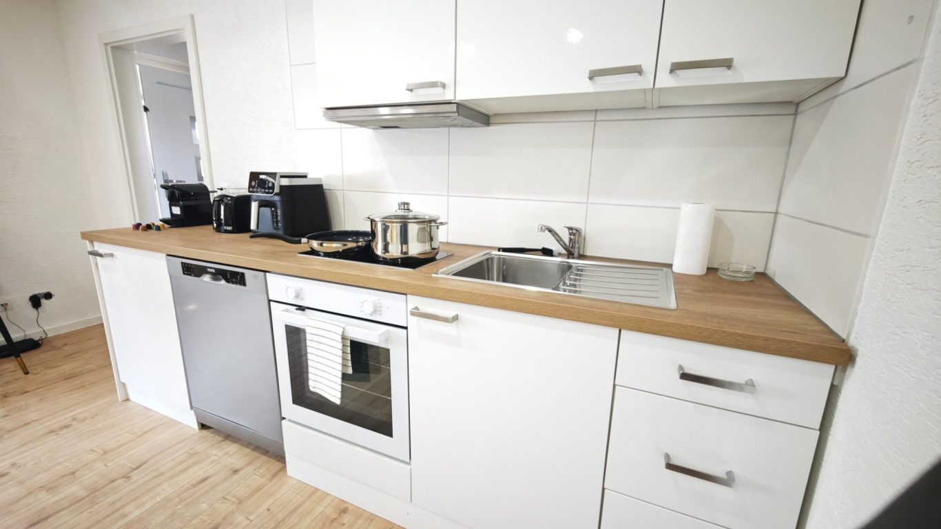 Die neue Einbauküche ist komplett ausgestattet – vom Kochgeschirr bis zur Heißluftfritteuse ist alles vorhanden, was du für selbstgekochte Mahlzeiten brauchst. Ein privater Stellplatz direkt vor der Tür macht die Anreise besonders unkompliziert.