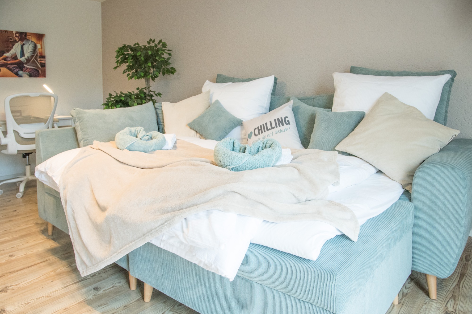 Eine moderne und liebevoll eingerichtete Maisonette-Wohnung in Straßenhaus über 2 Etagen (1.+2. OG, ohne Aufzug), ideal für Familien, Urlauber und Geschäftsreisende. Die Wohnung bietet Ihnen folgende Qualitäten: eine voll ausgestattete Küche mit Bohnenkaffeemaschine und Essbereich für 6 Personen, ein großzügiges Wohnzimmer mit Schlafcouch und Balkonzugang, zwei Schlafzimmer mit Doppelbetten (eins davon mit begehbarem Kleiderschrank und Schmink-oder Frisiertisch), zwei Badezimmer (Dusche und Badewanne), zwei Arbeitsbereiche und eine Waschküche an. Eine Kinderausstattung ist ohne Aufpreis vorhanden. Ein eigener und inkludierter Parkplatz vor dem Haus, sowie weitere öffentliche Parktaschen 200m entfernt. Straßenhaus ist die perfekte Lage für Ausflüge nach Neuwied, Koblenz und auch in den Westerwald, mit tollen Sehenswürdigkeiten und Zielen.